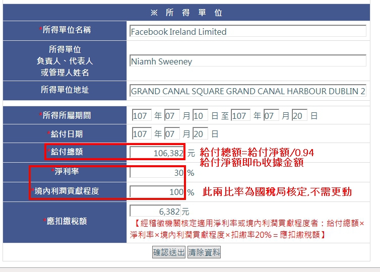 所以在Facebook上刊登廣告者,需自行處理繳稅事宜、主動申報代繳20%的稅金。